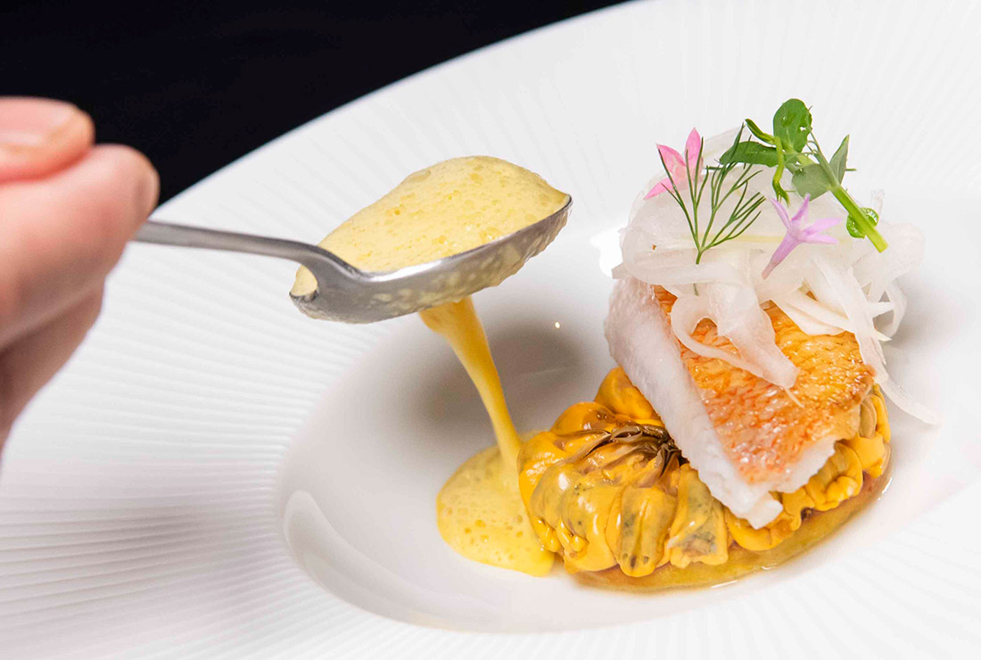 大きく開けたオープンキッチンでは、指揮を取る唐澤シェフによる臨場感溢れる調理風景をお楽しみいただけるのも醍醐味の一つです。